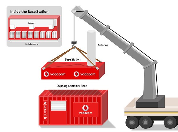 По словам технического директора Vodacom Андреса Делпорта (Andries Delport), благодаря использованию морских контейнеров для перевозки грузов покрытие новых территорий может быть организовано в буквальном смысле в течение нескольких недель, в отличие от типичных 12-18 месяцев времени на подготовку новых стандартных базовых станций. Новое оборудование не только меньше, но и является более энергоэффективным. Стоимость такого проекта в два раза меньше, чем расходы на установку традиционной базовой станции.
