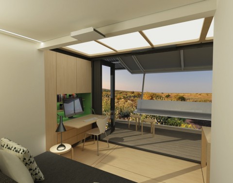 В основе конструкции такого жилища лежит морской контейнер. Каждый отдельный элемент - это модуль, который может быть собран в любую схему с другими такими же модулями. У каждой единицы есть возможность откинуть палубы с двух сторон, что в три раза увеличивает полезную площадь.