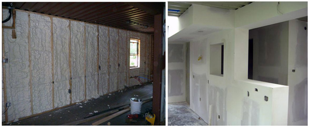 В любом случае нужно набить обрешётку из деревянных брусьев. Между ними прокладывается теплоизолятор, под ними протягивается проводка. Сверху настилается паробарьерная плёнка. Дальше дело вкуса – стены можно отделать гипсокартоном либо вагонкой.